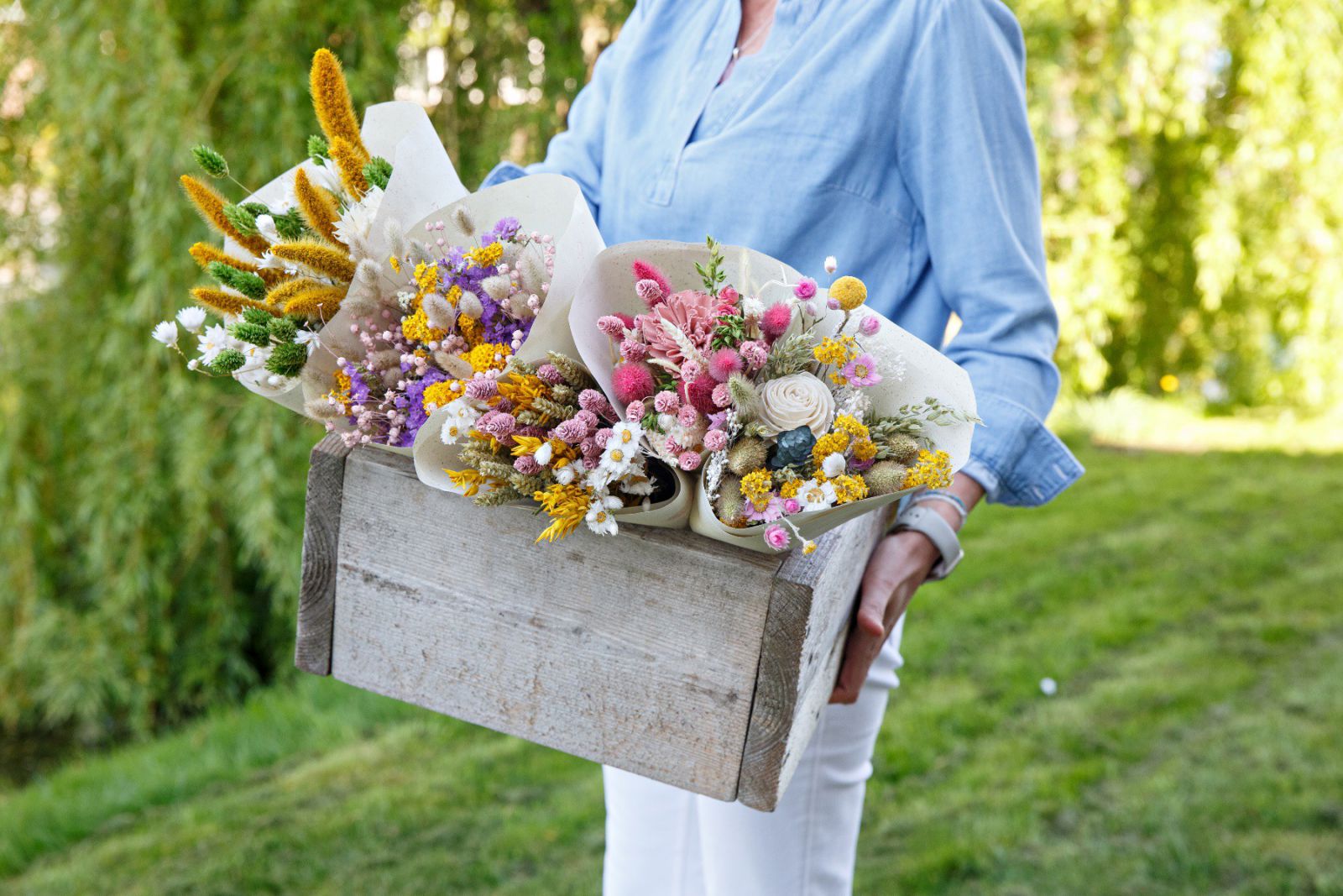 “Chúng tôi tự quản lý toàn bộ quy trình, từ phát triển giống cho đến sản phẩm hoàn thiện,” bà Femke van Aalst, Giám đốc Marketing của Lamboo Dried & Deco cho biết. Mọi thứ bắt đầu từ việc lai tạo và chọn lọc hạt giống, sau đó tiếp tục qua các công đoạn gieo trồng, nhân giống, canh tác trên đồng ruộng và thu hoạch. Sau đó, hoa được sấy khô bằng phương pháp chuyên biệt của chúng tôi, nhuộm màu và cuối cùng được chế tác thành sản phẩm hoàn chỉnh."